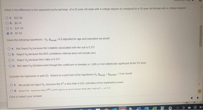 Statistics and Probability questions and answers. That is can you reject the null hypothesis H. Run a regression of average hourly earnings AHE on age Age.